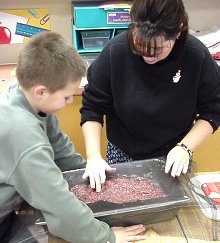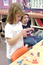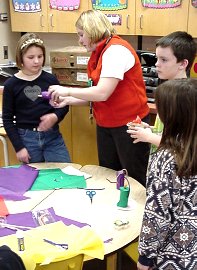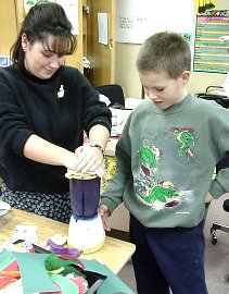 The Grades Three and Four classes made their own paper, from discarded scraps of construction paper.