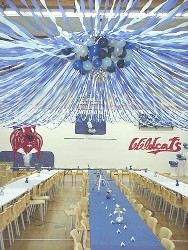 We are pleased to be able to bring you a panoramic view of the decorated gym, taken just before Grad 2001 began. You can pan in both directions and see the full 360° view of the gym.