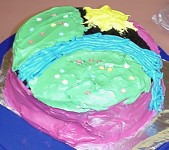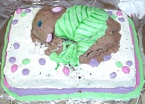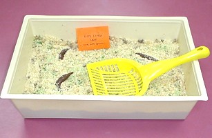 Kitty Litter CakeNot that our opinion is biased, or anything like that, but our Kitty Litter Cake was a big hit! Only a few people had to leave suddenly to visit the washroom ... the rest thought it was really gross! But it tasted good. The Tootsie Roll 'surprises' were a nice touch! We can't take credit for the recipe, but we can pass it along to you ... see it here and save it, if you have the courage to try it.