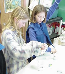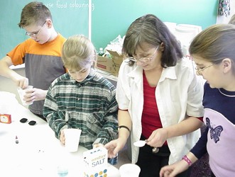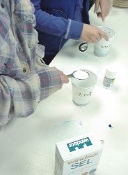 The Grade 5/6 class has been experimenting with various chemical solutions obtained by mixing commonly used ingredients, to see which ones will grow crystals.