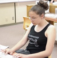 Katlyne pretending to be doing something important.