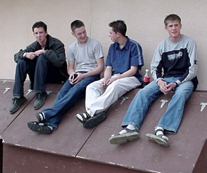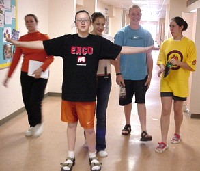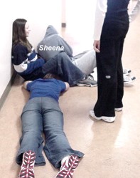 Hallway police! (The orange shorts are part of the uniform)