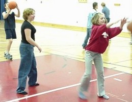 "If you bounce the ball with two hands, it won't bounce back and hit you in the face!"