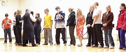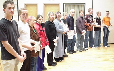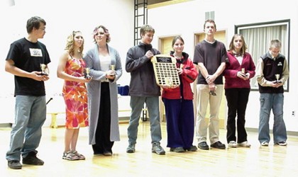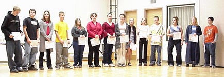 Left: Trena receives her award ftom Student Council members Vicky and Danae. Right: Cody, Josh, Jessica, Eyvind, Mandy, Shay, Kristin, Trena, Katlyne, Laurie, Vicky F, Janine. (Absent: Sheena)