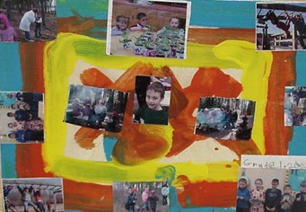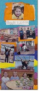 The students had painted pieces of plywood with designs, in bright colours. Onto the painted wood were glued photos from grade 1 and 2 activities held during first and second term. A date was added. At least two coats of 'podgy' were applied by the young crafters to 'finish' their displays.