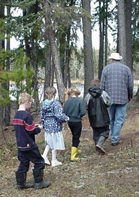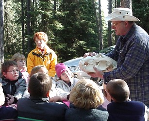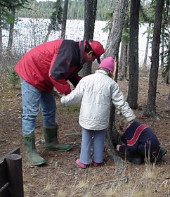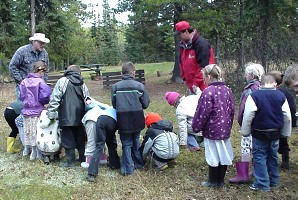 On Tuesday afternoon October 8, the Grade 1 and 2 classes and their teacher Mrs. Gula went on a field trip to Running Lake, north of Worsley. The students were told about some of the plant and animal life of the Northern Alberta region by Forest Educators Victor and Louise Ploc.