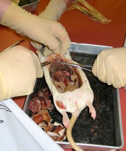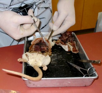Zoom in on a rat dissection