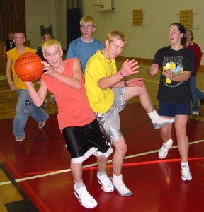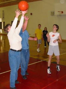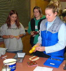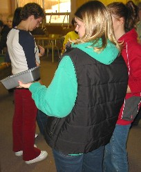 Poor Jeanine (above, right) looked so pathetic, wandering around the hallways looking for someone, anyone, to buy the last two hot dogs. We took pity on her and let her give them to us for nothing.