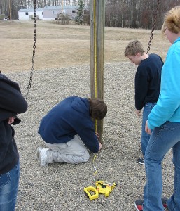The Math 7/8 class is using their knowledge of ratio and proportion to construct a scale model of the playground.