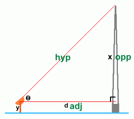 Finally, students had to add the height of the instrument 'y' in order to obtain the true height of the tower. The height of the gym wall was obtained in a similar way. These calculations were a review of material learned in grade 9. |