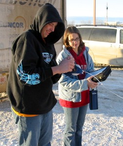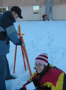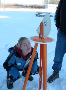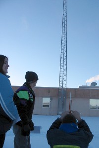 ![]() The math Pre-10 class practiced trigonometry calculations outside by determining the height of the gym wall and the internet tower. The method for calculating the height of the tower involved measuring angle 'theta', which was done using a clinometer.Students also measured distance 'd' to the base of the tower. Side 'x' was then solved for using the fraction for tan theta (opposite over adjacent) and a calculator.
