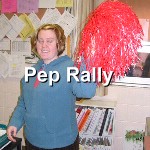 The staff played a team composed of student volleyball team members on Friday of Spirit Week, and we are pleased to report that once again the staff was triumphant, beating the student team by a score of 35-31.
