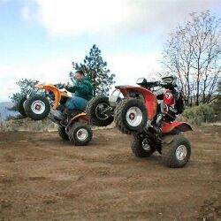 There are many tricks people can do with quads, like catwalk for a long time, and jumps. You can also do 'supermans', and sweet stuff like that. You can also slam on the front brakes and the back tires will come up ... we call that an 'endo'.