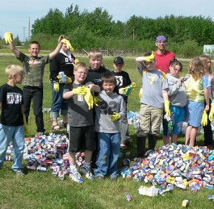 Recycling with Mr. Carleton and the grade 4/5/6 class