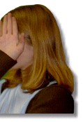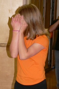 Melanie's 'hide behind the hands' technique. We always take her picture anyway!