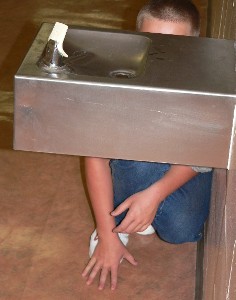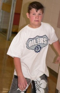 Nathan attempts the 'dumb look' technique, hoping we won't use the picture. We did.