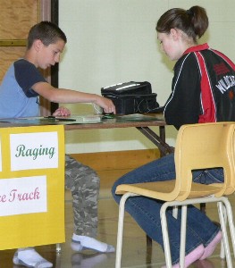 On June 20 Worsley School held its first ever 'Probability in Math' Fair. Students in grades 4, 5 and 6 designed games and activities under the guidance of their Math teacher Rick Carleton, and demonstrated them to a group of judges made up of staff and Sr. High math students. Each of the games demonstrated the students' knowledge of probability.