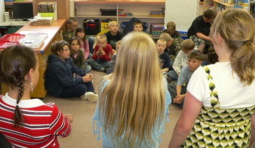 Kory, Vanessa and Sydney entertained the kindergarten class and their own classmates with some songs