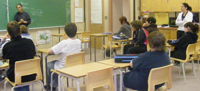 Mrs. Rowe's grade 6/7 Social Studies class enjoyed a visit by Syd Courtepatte. He spoke to the students about Louis Riel and the Rebellion.