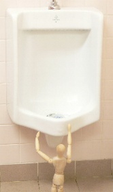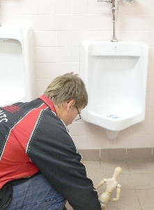 The movie is about the difficulties encountered by an animated mannequin who leaves the classroom to visit the washroom ... and discovers that urinals weren't designed for stick men!
