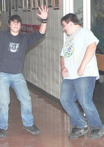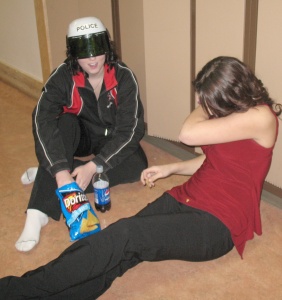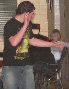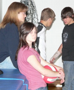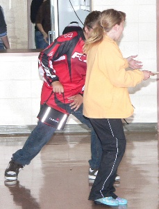 ![]() Here Brooke and Amanda demonstrate several techniques for avoiding getting their pictures taken. Brooke's helmet is original, if not very effective. Mostly they rely on pretending to smell their armpits.