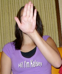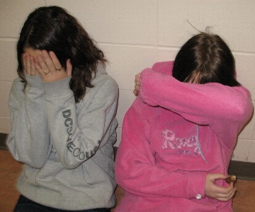 ![]() Here Jocelyn and Kelsey demonstrate the most common avoidance technique... putting a hand in front of the face. OK, we don't get to see your face ... but we still get a good look at the rest of you!