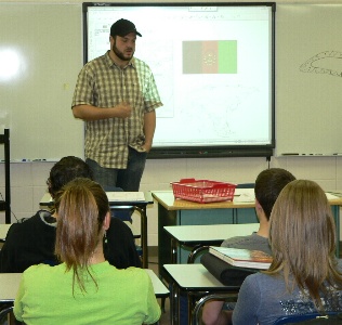 Blake told us about conditions in Afghanistan, through his personal reflections and a slideshow of photographs he took while overseas. He explained what the Canadian military is hoping to accomplish in Afghanistan, and then went on to describe various careers in the Canadian Forces, and what kind of training a person receives.