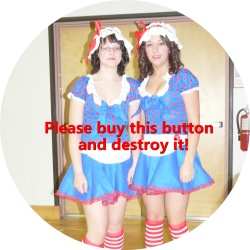 We know you didn't get to buy the button you really wanted, so we've posted some of them here for you to download and print yourself. Cut them out, glue them to stiff paper, and add a safety pin! Knock yourself out! Scroll to the right >>>