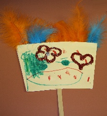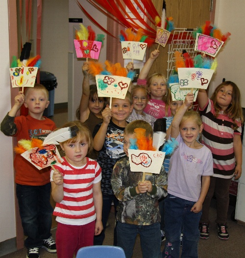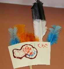 Our F.N.M.I liaison person, Delainah Velichka, showed the Kindergarten class how to make aboriginal dance fans!