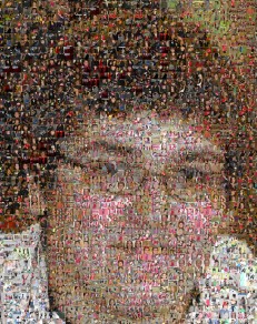 A computer mosaic of Michael. This large photo is made from thousands of tiny yearbook images.