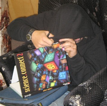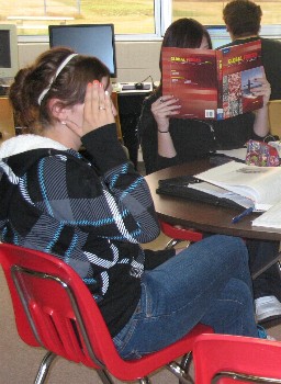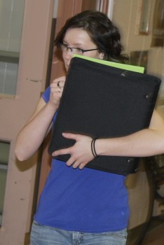 Bailey needs to practice the 'hide behind a binder' technique a little more.
