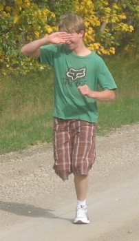 Rylan shows his athletic skill by being able to run and hide his face at the same time.