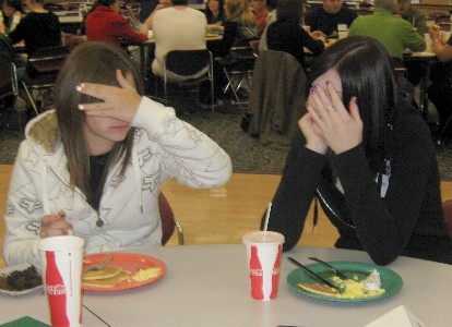 Renessa and Emily employ two unsuccessful strategies for avoiding the camera.