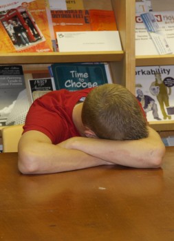 Tim pretends to be asleep, hoping the cameraman will just go away!