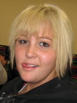 Chelsie uses the 'hide behind the hand' technique. Unfortunately she forgot to close her fingers.