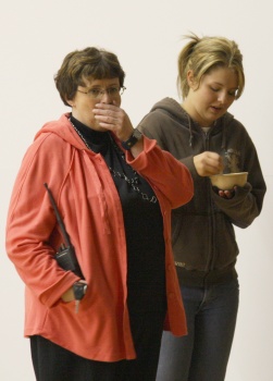"Maybe if we stare at this long enough we'll blend in ... and he won't take a picture"