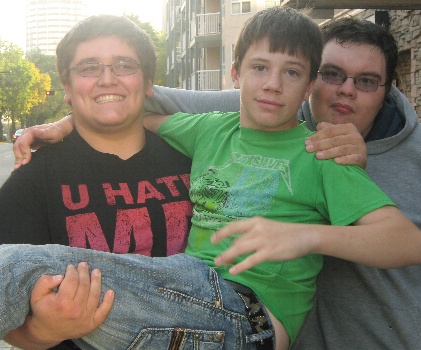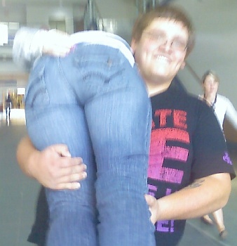 Michael had to carry Emily everywhere because she twisted her knee ... a better image!