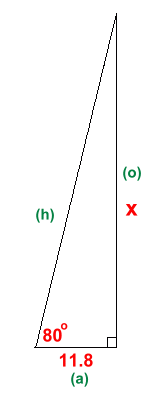 This gave us a right triangle. We know the bottom angle and the adjacent side. To calculate the height of the opposite side X, we will set up a trigonometric ratio, and then solve it for X: ![]() This works because the ratio of sides in an 80° right triangle is always the same, so a calculator knows what x/11.8 is supposed to be ... that's what tan80 is. The result shows that this particular rocket rose to a height of about 67 metres before the motor burned out.