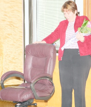 The staff and students said good-bye to our principal Marg McCuaig-Boyd, presenting her with flowers and a gift
