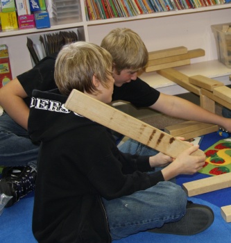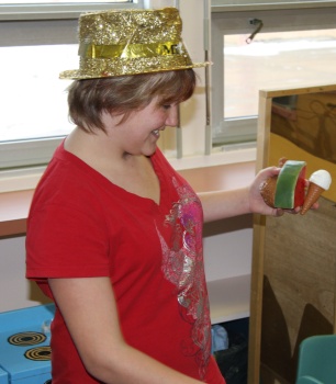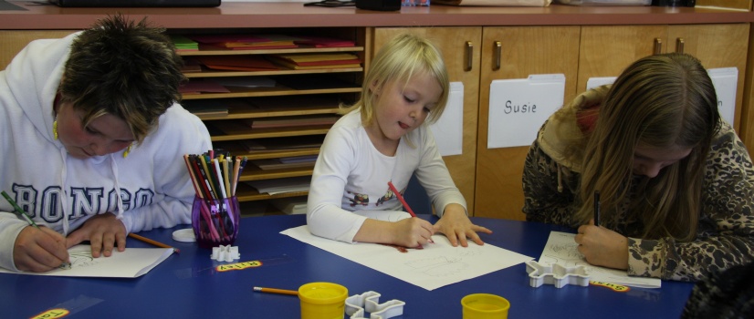 On Monday, November 2 the grade 6/7 class came to the Kindergarten to share in learning and activities. The grade 6/7 class helped the Kindergarten students work in their journals and complete math sheets. After completing their activities, the Kindergarten students challenged the grade 6/7 students to a game of naming items. The question that was asked of the grade 6/7 class was to tell what three items had in common ( a clock, an audience and an arm) …. after much humming and hawing, they finally came up with “hand”.