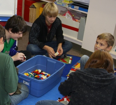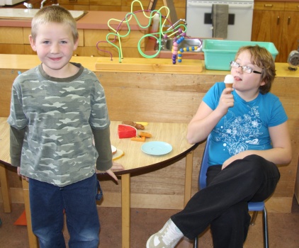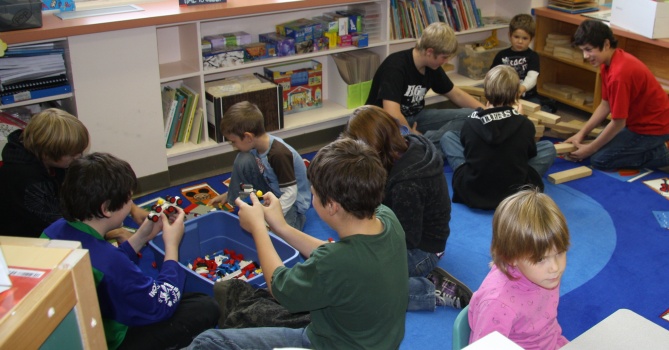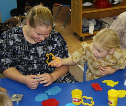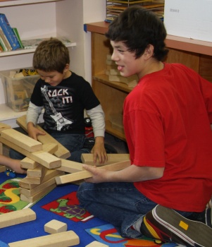 Before returning to their classroom, the “big kids” played with the Kindergarten kids … building with blocks, legos and playdough.
