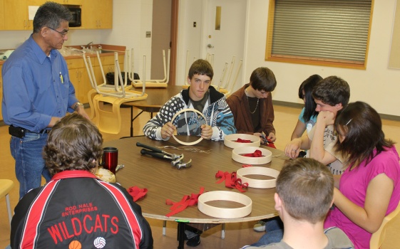 As part of our FNMI initiative, Syd Courtepatte volunteered his time to help our grade 9 class make drums.