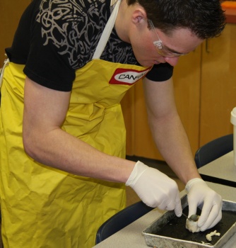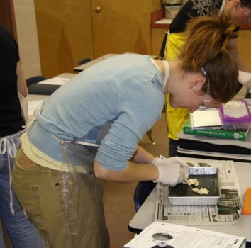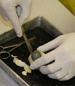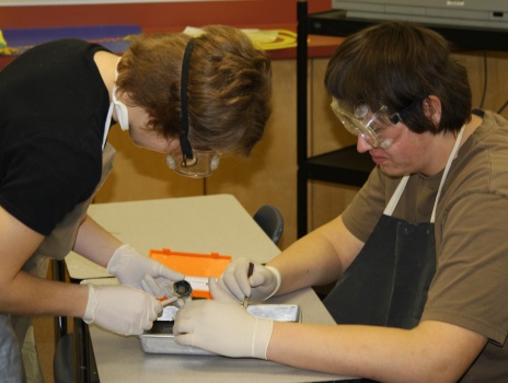 Student in Bio 30, here and in Hines Creek, learned about the structure of the eye by dissecting a cow eyeball.