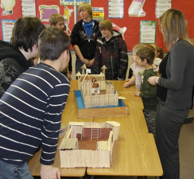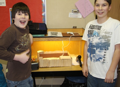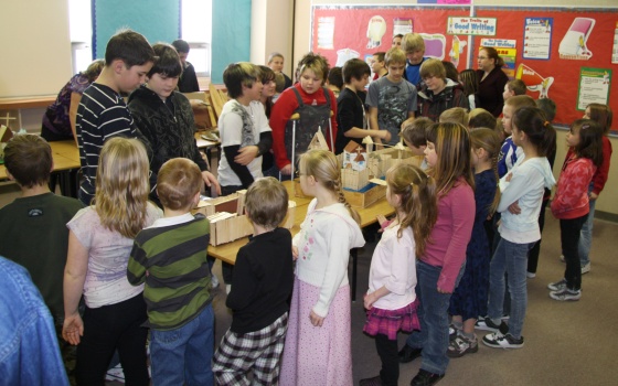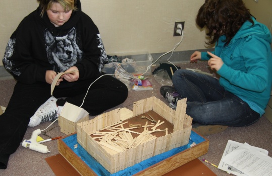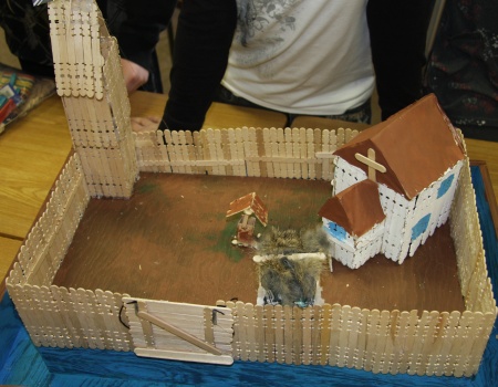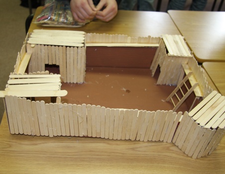 The grade 6 and 7 Social Studies class recently completed their dioramas of Canadian fur trading forts. Each group chose a specific fort they would like to make. The students were expected to recreate the forts as accurately as possible. They used any materials they could find, including popsicle sticks, wood, legos, paint and paper. One group even brought in their own furs and traps to put on display. Projects were well thought out and well done, and were put on display for the lower elementary classes.