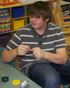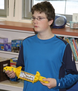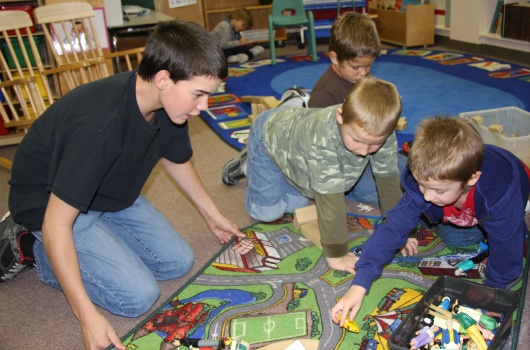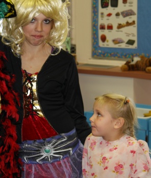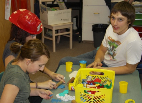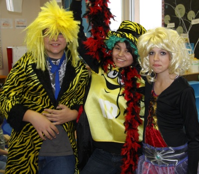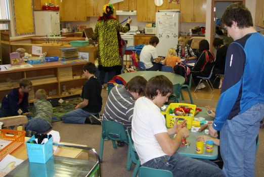 The grade 8/9 class visited the Kindergarten so that everyone could get to know each other better. The Jr. High students enjoyed playing with the toys and costumes in the room ... perhaps a little too much!