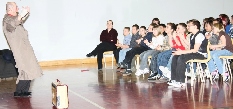 In February we were treated to a performance by Max Fomitchev, a world-renowned mime. As a member of the famed Zakutok Theatre based in Moscow, he has toured throughout Russia as well Spain, Germany, Taiwan, England, the United States and Canada. Max now lives in Vancouver, and performs in films, on TV, at festivals, and in schools. Our students were captivated by his hour-long series of sketches, during which not a word was spoken, and the only sound was laughter!