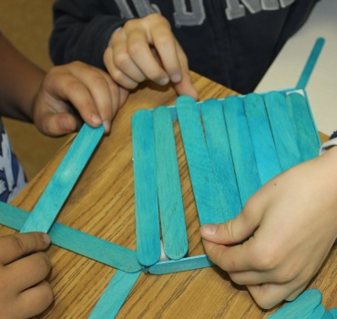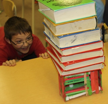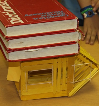 As a followup to their 'Wolf on Trial' activity, the class built houses and tested them for strength.
