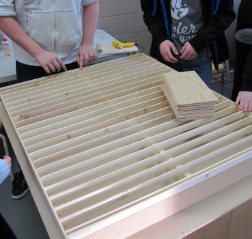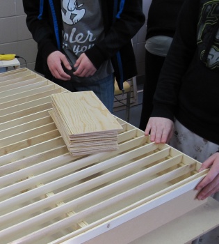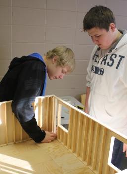 Students have now begun work on a 1/8 scale house. The plans will produce a small model (about a metre long) that will allow students to learn how to lay floor joists and frame walls and a roof.