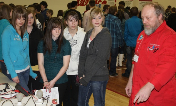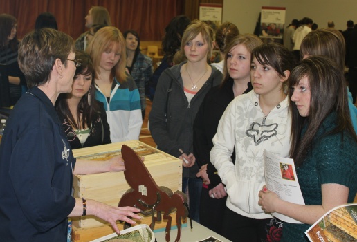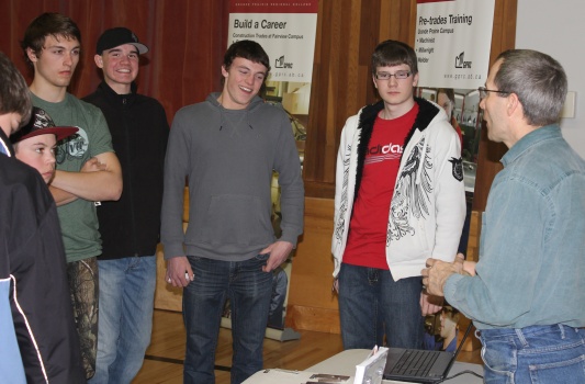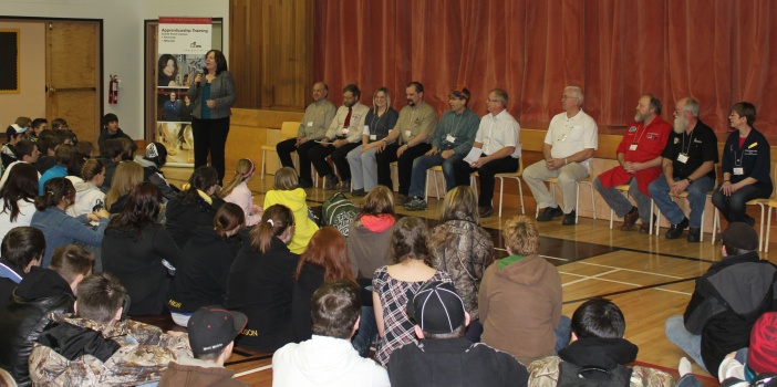 On March 1st at Worsley Central School, the students of Worsley, Cleardale and Hines Creek and staff were treated to a Trades Fair. The Fair was a collaborative effort between PRSD, ClearHills County, GPRC and Moffat Construction. The students started off with a group presentation from each instructor, and then were given a chance to interact with the instructors in a smaller group setting. While in their groups, the students got to handle some of the tools of the trade and ask questions to better their understanding of each program and give them more insight into trades and apprenticeship. Some of the trades present were Animal Health Technology, Beekeeping, Welding, Pipe Fitter, General Mechanic, Heavy Duty Tech, Carpentry, Harley Davidson Tech and more. Everyone came away with a better understanding of the secondary programs that are available to them locally and hopefully a new interest to pursue throughout their studies.