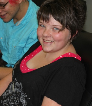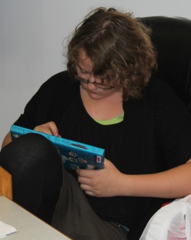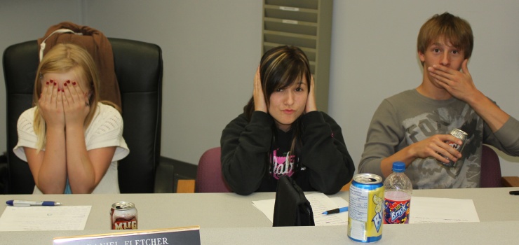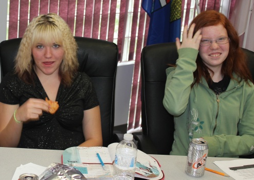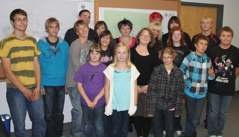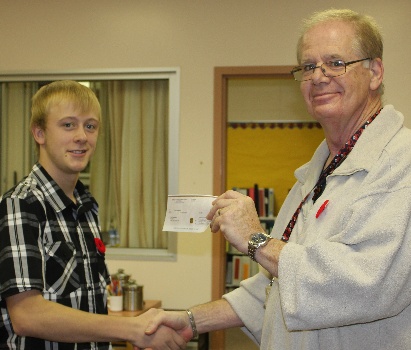 Tyrell is presented with a $100 prize by Mr. Willis on behalf of the